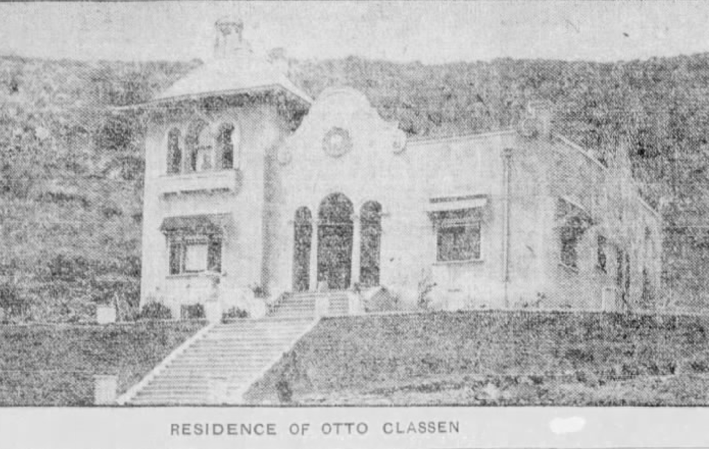 As Highland Avenue began to grow, the address changed several times from 118, to 305, to 415, to 2015 and finally 2025 and 2027 as the property was originally three acres that spanned from Highland Avenue to Glencoe Way. Currently, the property contains the original house, the carriage house, a guest house and an art studio. In 1911, Classen added a one room studio to the property. In 1918, Elsie Classen died in the home at the age of 33; Otto moved to Santa Monica by 1919.