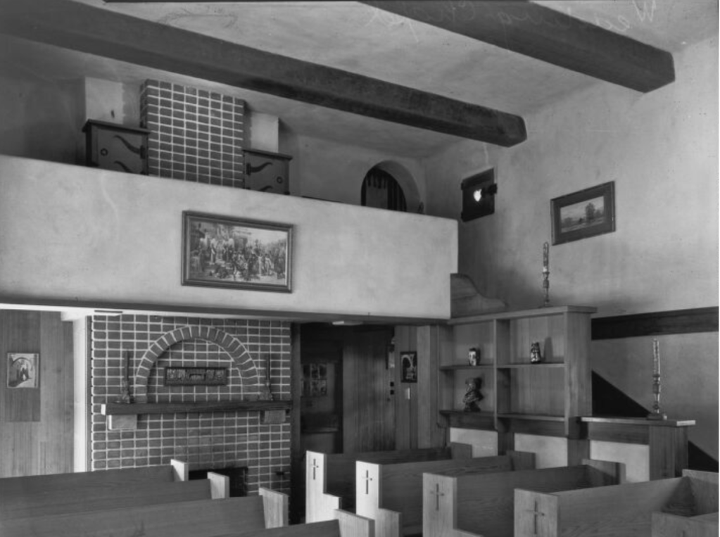 Between 1931 and 1934 the house was purchased by church organist and director, Kathryn Baird Sullivan, who converted the main room of the house into the “Hollywood Wedding Chapel”. She had been invited by Sid Grauman to play the organ at his theater when the film “Noah’s Ark” premiered in 1928.