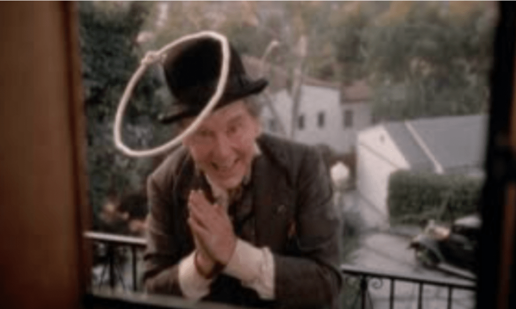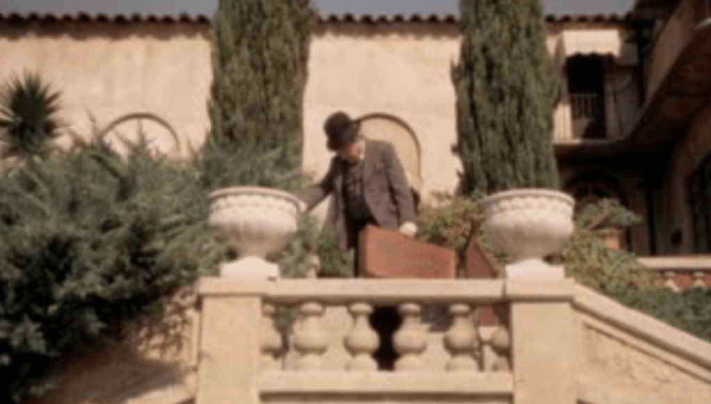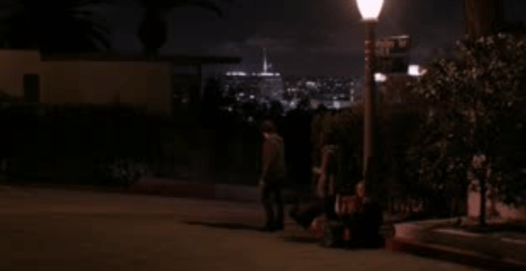 Burgess Meredith’s character is a peddler and tries to sell a potion up in Whitley Heights. His neighbor drives him up Whitley Avenue and drops him off at the intersection of Whitley Avenue (above) and Whitley Terrace as the car drives west on Whitley Terrace. Burgess visits three homes in the heights. First, 2073 Grace Avenue, then 6735 Wedgwood Drive house finally 6717 Whitley Terrace.