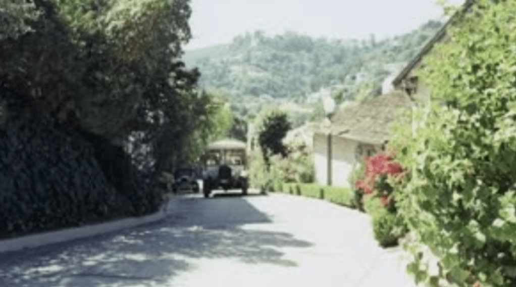 “The Way We Were” starred Robert Redford and Barbara Streisand was a drama about a couple with differing social beliefs who marry, find out that friendship and physical attraction is not enough to overcome a relationship. Below, the top of Whitley Avenue can be seen as Katie is saying goodbye to her friend and is leaving in her car. While Streisand was a nominee for best actress in 1974, the film won for “Best Music, Original Song”.