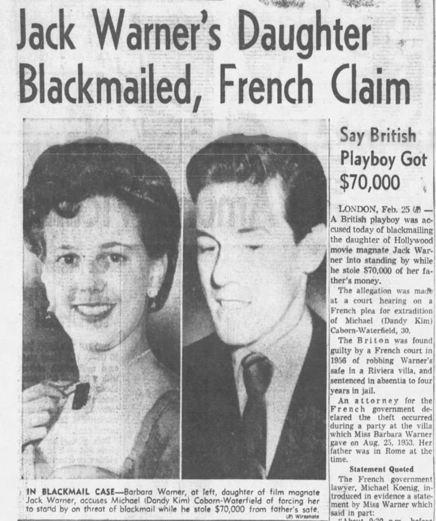 On December 22, 1955, she married Parisian restaurateur Claude Terrail at the age of 21 in Fairfax, Virginia. Terrail inherited the famed “Tour d’Argent” from his father in Paris, located near the Notre Dame church. This restaurant still exists and claims it was founded in 1582. In 1956, her ex-boyfriend, Michael Coburn-Waterfield, was sent to prison for four years for stealing $70,000 from her safe in 1953. In 1960, it was revealed that Coburn-Waterfield took the money during a party she was having at her father’s house when he was out of town. A New York playboy, Coburn-Waterfield had blackmailed the young woman out of the money.