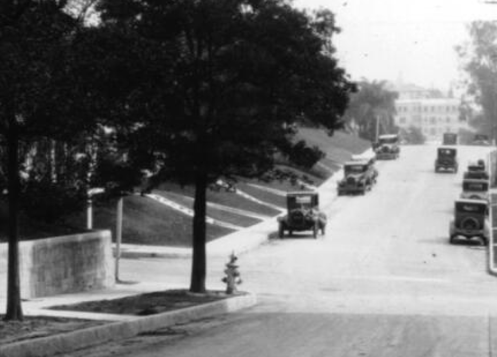 Below is Whitley Avenue during the 1920s; Pearl Court was located just beyond the tree on the left where the cars were parked.