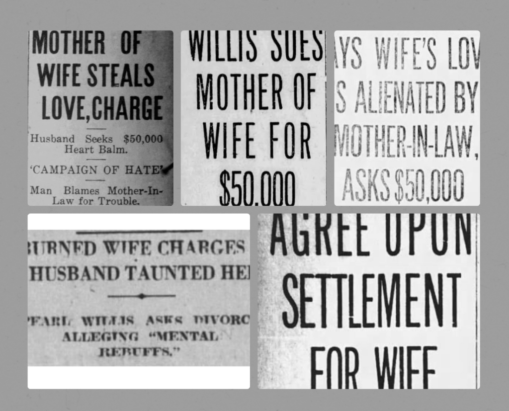 When Pearl Court (1840-1858 Whitley Avenue) first opened, it was rented at full capacity from out-of-state renters. Willis and his wife, Pearl, lived in one of the residences, but not for long. In 1918, Willis sold Pearl Court to Professor E.K. Isaacs in exchange for Woodbury Business College and then the Willis’ moved into a home in the Wilshire District. Unfortunately, the Willis marriage began to unravel since moving from Pearl Court. As soon as they moved, Pearl’s clothing caught on fire while cooking on the gas stove; she was burned severely and had to be confined to her bed to recover. Stephen was never home as he was busy growing his college. On February 1, 1920, Pearl filed for divorce due to ‘extreme cruelty’. It was a ‘messy’ divorce as Stephen sued Pearl’s mother for alienating Pearl from him.