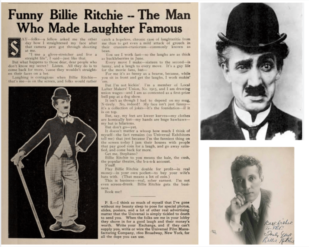 Chaplin’s debut film “Making a Living”, was one of two films in which he did not portray his iconic role, “The Tramp”. His second film “Kid Auto Races at Venice” was the first film where The Tramp appeared. The film was released February 7, 1914 by Keystone Film Company, directed by Henry Lehrman. Then Lehrman left Chaplin and Keystone to start his own company. He hired Billie Ritchie to appear in his first film production, “Love and Surgery”, which was released October 14, 1914.