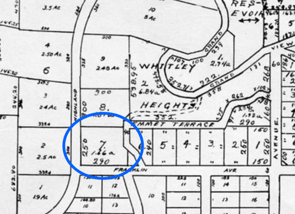 6705 Franklin Avenue was described as the first bungalow home to be built in Hollywood by the Los Angeles Times by architects Myron Hunt and Elmer Gray in 1907. The house was the second house to the right of the intersection of Franklin and Highland Avenues and next to the famed WR Blackburn home that actress Norma Shearer rented in 1925.