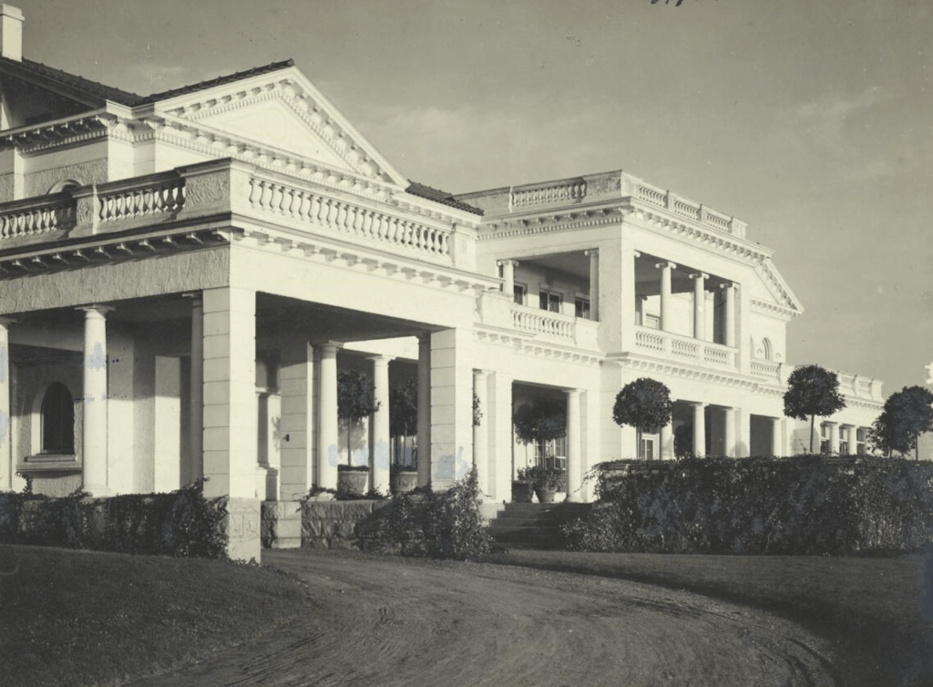 Lee Eleanor “Birdie” Pollock Graham had purchased the entire block and built this home for her parents, Mr. and Mrs. Thomas H. Pollock. Graham was one of the richest women in America; she had married oilman William M. Graham in 1889, who later became the “California Oil King”. They built a 25,000 square foot Italian villa featuring a 26-foot-wide veranda called “Bellosguardo” (below) in Santa Barbara in 1903. The original structure was damaged in a 1925 earthquake which was rebuilt by the next owner.